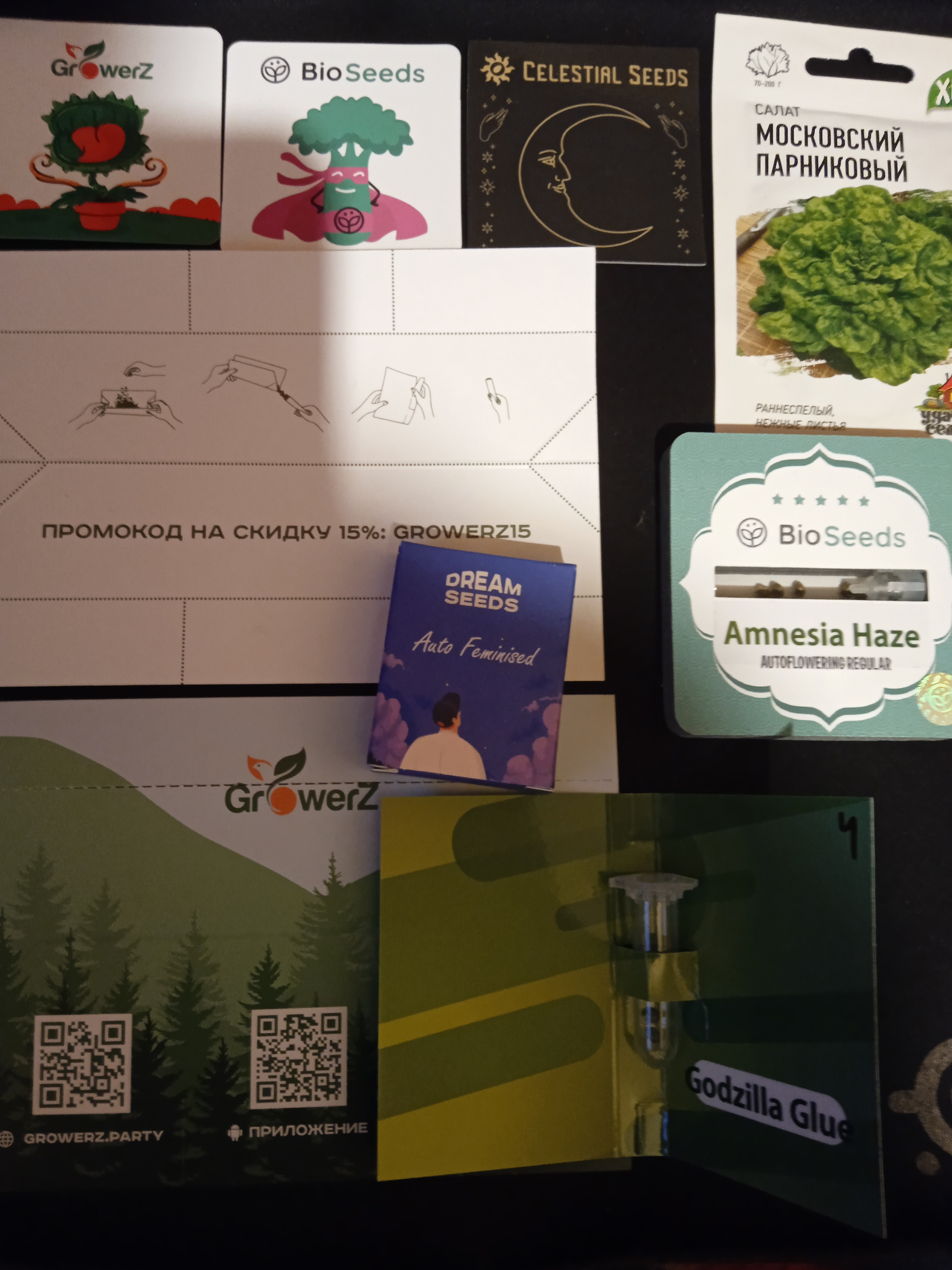 Пришло как всегда быстро, порадовали бонусы и семена для огородных культур. Так же масса магнитиков, календарь и дополнительно 2 вкладыша. И как обещано сразу высветилась скидка на 5% на все будущие покупки что не может не радовать. О в схожести отпишусь позже. Спасибо GrowerZ буду с вами сотрудничать и дальше.
