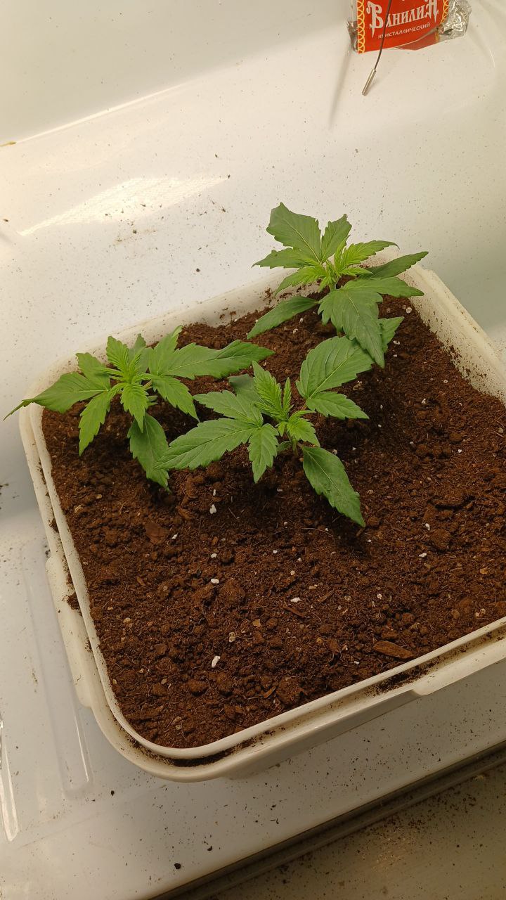 Купил 3 семечки, посадил 2, все проросли 24 мая(блюдце, два влажных диска, отожмать слегка, через 12 часов чуть добавил воды, пленкой не накрывал, тепмература 24-26 нралусов), каску сбросили 27, ростут очень быстро(грунт фаско, перлит,вермикулит, на дно керамзит, ведро 15 литров), полив отстоявщейся водой, свет пока фитолампа самодельная на сов матрицах ухо 200 ватт реальных, потом думаю добавить еще 100 и 3 по 9 ватт еа досвет, температура 26-28 , влажность 45-55, может мне повезло, но из двух две девки, запах уже есть в боксе. Бонус куш сити ждет своего часа. Пока все без проблем, подкомил один раз 6 июня раствором ( 100 грамм конского на 10 литров воды, планирую раз в неделю по литру на растишку). Всем удачного грова.